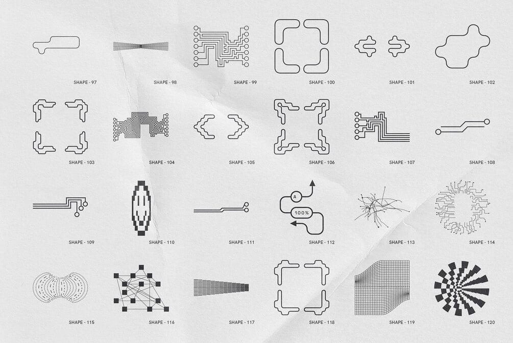 Here are ✦ 144 unique graphic assets ✦ including 48 pixelated objects (here you will find illustrations of an Astronaut, Comet, Street video surveillance camera, Moon, Skull, Car on Fire, Monkey, Crown, Panther Brain, Artificial Intelligence, UFO, Monsters, aliens, and other characters), 24 maximalist icons and mura patterns, 24 hud icons and frames, and 48 additional graphic elements. With this huge kit, you may create posters, t-shirt designs, music album designs, and everything you want. Use high-detailed shapes as the main object of your design, and low-detailed elements as an additional element.