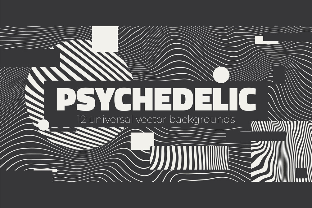 Collection "Psychedelic. Wave Backgrounds" is a set of high-quality 12 linear illustrations with smooth distorted transition effects. All backgrounds are in vector and raster formats.