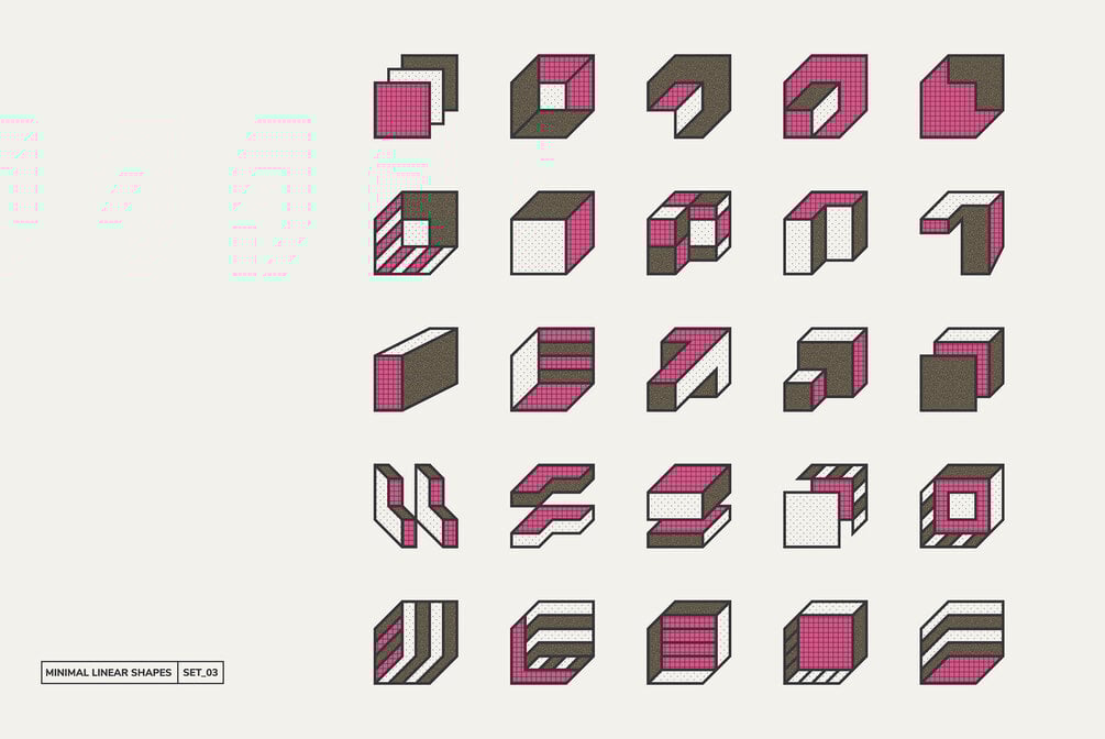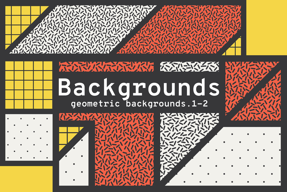 Big set "Geometric design. Shapes + patterns" with 100 Geometric shapes, 10 backgrounds, and 10 seamless patterns designed to help you create fresh concepts really fast!