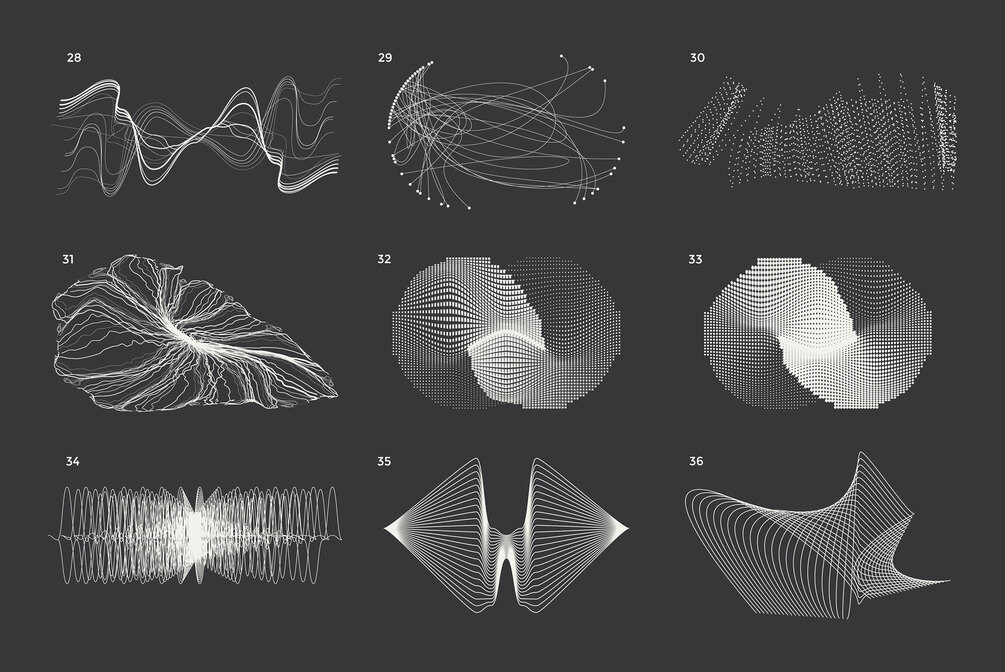 The collection "Technological Shapes" is a big set of high-quality 36 design forms with easily editable strokes.